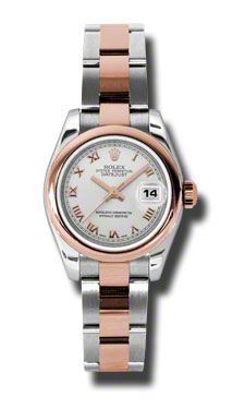 Model: 179161-SIRO - CASE = [Material:Stainless Steel], [Case Diameter:26], [Bezel:Fluted 18kt White Gold], [Case Back:Solid], [Water Resistant:100 Meters - 330 Feet], [Crystal:Sapphire], DIAL = [Color:Silver Roman Numeral], MOVEMENT = [Type:Automatic Self Winding], [Crown:Pull/Push], BAND = [Clasp:Oysterlock Clasp], [Type:Stainless Steel and 18K Pink-Gold Oyster], (Usually ships in 1 to 2 weeks.)