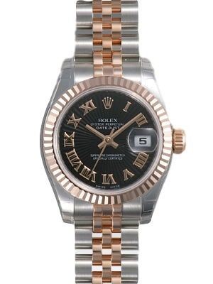 Model: 179171-BKSRJ - CASE = [Material:Stainless Steel], [Case Diameter:26], [Bezel:Fluted 18kt Rose Gold], [Water Resistant:100 Meters - 330 Feet], [Crystal:Sapphire], DIAL = [Color:Black Sunburst Roman Numeral], MOVEMENT = [Type:Automatic Self Winding], BAND = [Type:Two Tone Rose Gold and Stainless Steel], (Usually ships in 1 to 2 weeks.)