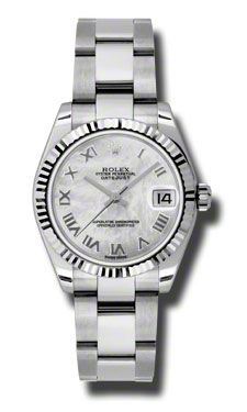Model: 179174-MOPRO - CASE = [Material:Stainless Steel], [Case Diameter:26], [Bezel:Fluted 18kt White Gold], [Case Back:Solid], [Water Resistant:100 Meters - 330 Feet], [Crystal:Sapphire], DIAL = [Color:Mother of Pearl Roman Numeral], MOVEMENT = [Type:Automatic Self Winding], [Crown:Screw Down], BAND = [Clasp:Oysterlock Clasp], [Type:Stainless Steel Oyster], (Usually ships in 1 to 2 weeks.)