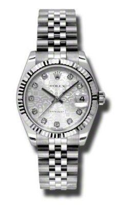 Model: 178274-SLJBDJ - CASE = [Material:Polished Stainless Steel], [Case Diameter:31], [Bezel:Fluted 18K White Gold], [Case Back:Solid], [Water Resistant:100 Meters - 330 Feet], [Crystal:Scratch Resistant Sapphire],; DIAL = [Color:Date at 3 and Diamond Hour Markers on Silver Jubilee],; MOVEMENT = [Type:Self Winding Swiss Chronometer], [Crown:Screw Down],; BAND = [Clasp:Concealed Crownclasp], [Type:Jubilee], (Usually ships in 2 to 4 business days.)