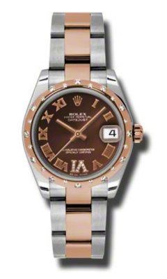 Model: 178341-CHRO - Case,; MATERIALSTAINLESS STEEL AND 18K ROSE GOLD = [Case Diameter31], [Bezel26 Diamonds set in 18K Rose Gold Domed], [Case BackSolid], [Water Resistant100 Meters - 330 Feet], [CrystalScratch Resistant Sapphire], Dial,; COLORROMAN NUMERALS AND VI SET WITH 11 DIAMONDS DATE AT3 ON CHOCOLAT BROWN = Movement,; TYPESELF WINDING SWISS CHRONOMETER = [CrownScrew Down], Band,; CLASPOYSTERCLASP WITH EASYLINK COMFORT EXTENSION LINK = [TypeSteel and 18k Rose Gold Oyster], (Usually ships in 2 to 4 business days.)