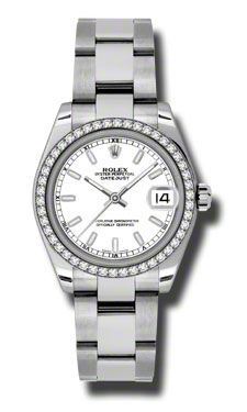 Model: 178384-WHSO - Case,; MATERIALSTAINLESS STEEL = [Case Diameter31], [BezelFixed 18kt White Gold Bezel Set with 46 Diamonds], [Case BackSolid], [Water Resistant100 Meters - 330 Feet], [CrystalScratch Resistant Sapphire], Dial,; COLORWHITE STICK = Movement,; TYPEAUTOMATIC SELF WINDING = [CrownScrew Down], Band,; CLASPOYSTERLOCK CLASP = [TypeStainless Steel Oyster], (Usually ships in 1 to 2 weeks.)