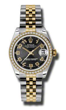 Model: 178383-BKAJ - CASE = [Material:Stainless Steel and 18kt Yellow Gold], [Case Diameter:31], [Bezel:18kt yellow gold set with 46 Diamond], [Case Back:Solid], [Water Resistant:100 Meters - 330 Feet], [Crystal:Sapphire], DIAL = [Color:Black Arabic], MOVEMENT = [Type:Automatic Self Winding], [Crown:Screw Down], BAND = [Clasp:Concealed Crown], [Type:18kt Yellow Gold and Stainless Steel Jubilee], (Usually ships in 1 to 2 weeks.)