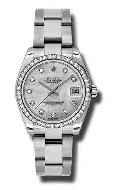 Model: 178384-MOPDO - CASE = [Material:Stainless Steel], [Case Diameter:31], [Bezel:Fixed 18kt White Gold Bezel Set with 46 Diamonds], [Case Back:Solid], [Water Resistant:100 Meters - 330 Feet], [Crystal:Scratch Resistant Sapphire], DIAL = [Color:Mother of Pearl Diamond], MOVEMENT = [Type:Automatic Self Winding], [Crown:Screw Down], BAND = [Clasp:Oysterlock Clasp], [Type:Stainless Steel Oyster], (Usually ships in 1 to 2 weeks.)