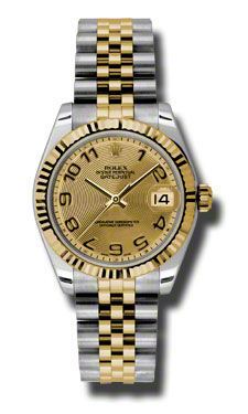 Model: 178273-CHCAJ - CASE = [Material:Stainless Steel], [Case Diameter:31], [Bezel:Fluted], [Case Back:Solid], [Water Resistant:100 Meters - 330 Feet], [Crystal:Sapphire], DIAL = [Color:Champagne Concentric Circle Arabic], MOVEMENT = [Type:Automatic Self Winding], [Crown:Screw Down], BAND = [Clasp:Concealed Crown], [Type:18kt Yellow Gold and Stainless Steel Jubilee], (Usually ships in 1 to 2 weeks.)