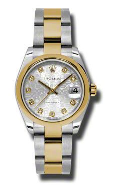 Model: 178243-SIJDO - CASE = [Material:Stainless Steel and 18kt Yellow Gold], [Case Diameter:31], [Bezel:Domed], [Case Back:Solid], [Water Resistant:100 Meters - 330 Feet], [Crystal:Sapphire], DIAL = [Color:Silver Jubilee Diamond], MOVEMENT = [Type:Automatic Self Winding], [Crown:Screw Down], BAND = [Clasp:Oysterlock Clasp], [Type:18kt Yellow Gold and Stainless Steel Oyster], (Usually ships in 1 to 2 weeks.)