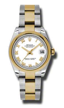 Model: 178243-WHRO - CASE = [Material:Stainless Steel and 18kt Yellow Gold], [Case Diameter:31], [Bezel:Domed 18kt Gold], [Case Back:Solid], [Water Resistant:100 Meters - 330 Feet], [Crystal:Sapphire], DIAL = [Color:White Roman Numeral], MOVEMENT = [Type:Automatic Self Winding], [Crown:Screw Down], BAND = [Clasp:Oysterlock Clasp], [Type:18kt Yellow Gold and Stainless Steel Oyster], (Usually ships in 1 to 2 weeks.)