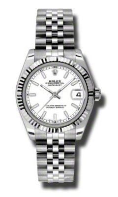 Model: 178274-WHIJ - CASE = [Material:Polished Stainless Steel], [Case Diameter:31], [Bezel:Fluted 18K White Gold], [Case Back:Solid], [Water Resistant:100 Meters - 330 Feet], [Crystal:Scratch Resistant Sapphire], DIAL = [Color:Index Numerals, Date at 3 on White], MOVEMENT = [Type:Self Winding Swiss Chronometer], [Crown:Screw Down], BAND = [Clasp:Concealed Crownclasp], [Type:Jubilee], (Usually ships in 2 to 4 business days.)