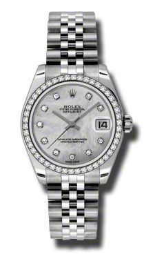 Model: 178384-MOPDJ - CASE = [Material:Stainless Steel], [Case Diameter:31], [Bezel:Fixed 18kt White Gold Bezel Set with 46 Diamonds], [Case Back:Solid], [Water Resistant:100 Meters - 330 Feet], [Crystal:Scratch Resistant Sapphire], DIAL = [Color:Mother of Pearl Diamond], MOVEMENT = [Type:Automatic Self Winding], [Crown:Screw Down], BAND = [Clasp:Concealed Crown], [Type:Stainless Steel Jubilee], (Usually ships in 1 to 2 weeks.)