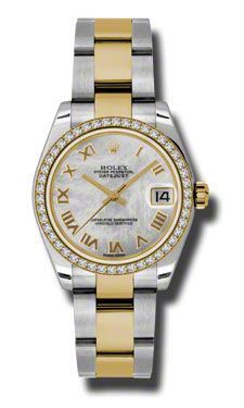 Model: 178383-MOPRO - CASE = [Material:Stainless Steel and 18kt Yellow Gold], [Case Diameter:31], [Bezel:18kt yellow gold set with 46 Diamond], [Case Back:Solid], [Water Resistant:100 Meters - 330 Feet], [Crystal:Sapphire], DIAL = [Color:Mother of Pearl Roman Numeral], MOVEMENT = [Type:Automatic Self Winding], [Crown:Screw Down], BAND = [Clasp:Oysterlock Clasp], [Type:18kt Yellow Gold and Stainless Steel], (Usually ships in 1 to 2 weeks.)