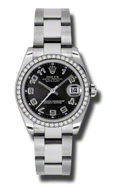 Model: 178384-BKCAO - CASE = [Material:Stainless Steel], [Case Diameter:31], [Bezel:Fixed 18kt White Gold Bezel Set with 46 Diamonds], [Water Resistant:100 Meters - 330 Feet], [Crystal:Scratch Resistant Sapphire], DIAL = [Color:Black Concentric Arabic], MOVEMENT = [Type:Automatic Self Winding], [Crown:Screw Down], BAND = [Clasp:Oysterlock Clasp], [Type:Stainless Steel Oyster], (Usually ships in 1 to 2 weeks.)
