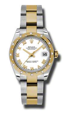 Model: 178343-WHRO - CASE = [Material:Stainless Steel and 18kt Yellow Gold], [Case Diameter:31], [Bezel:Domed], [Water Resistant:100 Meters - 330 Feet], [Crystal:Sapphire], DIAL = [Color:White Roman Numeral], MOVEMENT = [Type:Automatic Self Winding], [Crown:Screw Down], BAND = [Clasp:Oysterlock Clasp], [Type:18kt Yellow Gold and Stainless Steel], (Usually ships in 1 to 2 weeks.)