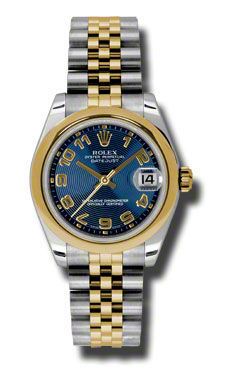 Model: 178243-BLAJ - CASE = [Material:Stainless Steel], [Case Diameter:31], [Bezel:Domed], [Case Back:Solid], [Water Resistant:100 Meters - 330 Feet], [Crystal:Sapphire], DIAL = [Color:Blue Arabic], MOVEMENT = [Type:Automatic Self Winding], [Crown:Screw Down], BAND = [Clasp:Concealed Crown], [Type:18kt Yellow Gold and Stainless Steel Jubilee], (Usually ships in 1 to 2 weeks.)