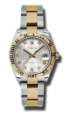Model: 178273-SIJDO - CASE = [Material:Stainless Steel], [Case Diameter:31], [Bezel:Fluted 18kt Yellow Gold bezel with 12 diamonds], [Case Back:Solid], [Water Resistant:100 Meters - 330 Feet], [Crystal:Sapphire], DIAL = [Color:Silver Jubilee Diamond], MOVEMENT = [Type:Automatic Self Winding], [Crown:Screw Down], BAND = [Clasp:Oysterlock Clasp], [Type:18kt Yellow Gold and Stainless Steel], (Usually ships in 1 to 2 weeks.)