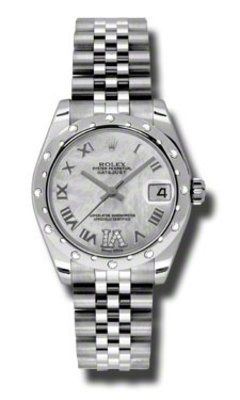 Model: 178344-MPRD6 - CASE = [Material:Stainless Steel], [Case Diameter:31], [Bezel:24 Diamonds set on 18K White Gold Domed], [Case Back:Solid], [Water Resistant:100 Meters - 330 Feet], [Crystal:Scratch Resistant Sapphire], DIAL = [Color:Date at 3, Roman Numeral Hour Markers and 11 Diamonds at VI on Mother of Pearl], MOVEMENT = [Type:Self Winding], [Crown:Screw Down], BAND = [Clasp:Concealed Crownclasp], [Type:Jubilee], (Usually ships in 2 to 4 business days.)