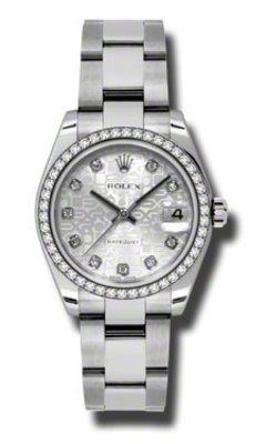 Model: 178384-SLJBDO - CASE = [Material:Stainless Steel], [Case Diameter:31], [Bezel:46 Diamonds set on 18K White Gold Domed], [Case Back:Solid], [Water Resistant:100 Meters - 330 Feet], [Crystal:Scratch Resistant Sapphire], DIAL = [Color:Date at 3, Diamond Hour Markers on Silver Jubilee], MOVEMENT = [Type:Self Winding Swiss Chronometer], [Crown:Screw Down], BAND = [Clasp:Oysterclasp], [Type:Oyster], (Usually ships in 2 to 4 business days.)