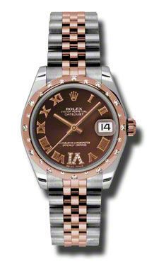 Model: 178341-BRRJ - CASE = [Material:Stainless Steel], [Case Diameter:31], [Bezel:18kt pink gold domed bezel set with 24 diamonds], [Case Back:Solid], [Water Resistant:100 Meters - 330 Feet], [Crystal:Scratch Resistant Sapphire], DIAL = [Color:Copper Roman Numeral], MOVEMENT = [Type:Automatic Self Winding], [Crown:Screw down], BAND = [Clasp:Concealed Crown], [Type:Stainless Steel and 18kt Pink Gold Jubilee], (Usually ships in 1 to 2 weeks.)