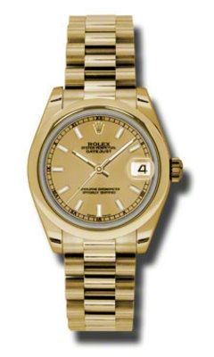 Model: 178248-CHI - CASE = [Material:18K Yellow Gold], [Case Diameter:31], [Bezel:Domed], [Case Back:Solid], [Water Resistant:100 Meters - 330 Feet], [Crystal:Scratch Resistant Sapphire], DIAL = [Color:Date and Index Markers Champagne], MOVEMENT = [Type:Self Winding], [Crown:Screw Down], BAND = [Clasp:Concealed Crownclasp], [Type:18K Gold President], (Usually ships in 2 to 4 business days.)