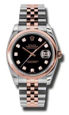 Model: 116201-BKDJ - CASE = [Material:Stainless Steel], [Case Diameter:36], [Bezel:Domed 18kt Pink Gold], [Case Back:Solid], [Water Resistant:100 Meters - 330 Feet], [Crystal:Scratch Resistant Sapphire],; DIAL = [Color:Black Diamond],; MOVEMENT = [Type:Automatic Self Winding], [Crown:Screw Down],; BAND = [Clasp:Concealed Crown], [Type:Stainless Steel With 18kt Pink Gold Jubilee], (Usually ships in 1 to 2 weeks.)