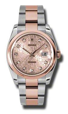 Model: 116201-CHJDO - CASE = [Material:18kt Pink Gold and Stainless Steel], [Case Diameter:36], [Bezel:Domed], [Water Resistant:100 Meters - 330 Feet], [Crystal:Sapphire],; DIAL = [Color:Champagne Jubilee Diamond],; MOVEMENT = [Type:Automatic Self Winding], [Crown:Screw Down],; BAND = [Clasp:Oysterlock Clasp], [Type:18kt Pink Gold and Stainless Steel], (Usually ships in 1 to 2 weeks.)