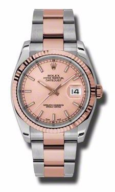 Model: 116231-CHSO - CASE = [Material:18kt Pink Gold and Stainless Steel], [Case Diameter:36], [Bezel:Fluted], [Water Resistant:100 Meters - 330 Feet], [Crystal:Sapphire],; DIAL = [Color:Champagne Index],; MOVEMENT = [Type:Automatic Self Winding], [Crown:Screw Down],; BAND = [Clasp:Oysterlock Clasp], [Type:18kt Pink Gold and Stainless Steel], (Usually ships in 1 to 2 weeks.)