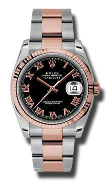 Model: 116231-BKRO - CASE = [Material:Two Tone Stainless Steel], [Case Diameter:36], [Bezel:Fluted 18kt Rose Gold], [Water Resistant:30 Meters - 100 Feet], [Crystal:Sapphire], DIAL = [Color:Black Roman Numeral], MOVEMENT = [Type:Automatic Self Winding], BAND = [Clasp:Deployant], [Type:Two Tone Stainless Steel], (Usually ships in 1 to 2 weeks.)