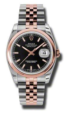 Model: 116201-BKSJ - CASE = [Material:Stainless Steel], [Case Diameter:36], [Bezel:Domed 18kt Pink Gold], [Case Back:Solid], [Water Resistant:100 Meters - 330 Feet], [Crystal:Scratch Resistant Sapphire], DIAL = [Color:Black Index], MOVEMENT = [Type:Automatic Self Winding], [Crown:Screw Down], BAND = [Clasp:Concealed Crown], [Type:Stainless Steel With 18kt Pink Gold Jubilee], (Usually ships in 1 to 2 weeks.)