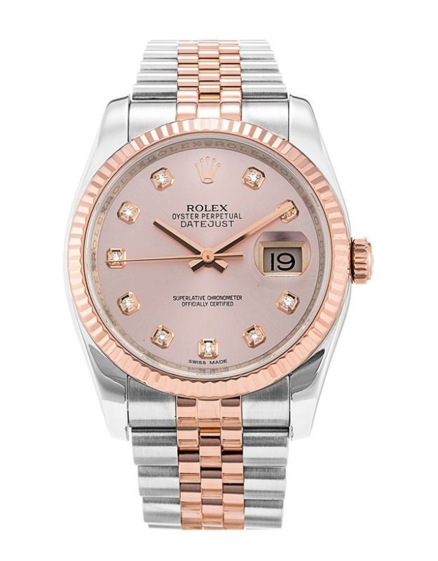 Model: 116231-PIDJ - CASE = [Material:Stainless Steel], [Case Diameter:36], [Bezel:Fluted 18kt Rose Gold], [Water Resistant:100 Meters - 330 Feet], [Crystal:Sapphire], DIAL = [Color:Pink Diamond], MOVEMENT = [Type:Automatic Self Winding], BAND = [Clasp:Concealed Crown], [Type:Two Tone Jubilee], (In Stock - Ready to ship.)