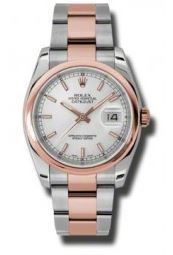 Model: 116201-SISO - CASE = [Material:18kt Rose Gold and Stainless Steel], [Case Diameter:36], [Bezel:Fixed Domed], [Water Resistant:100 Meters - 330 Feet], [Crystal:Sapphire], DIAL = [Color:Silver Index], MOVEMENT = [Type:31 Jewels Automatic Self Winding], BAND = [Clasp:Deployant], [Type:18kt Rose Gold and Stainless Steel], (Usually ships in 1 to 2 weeks.)