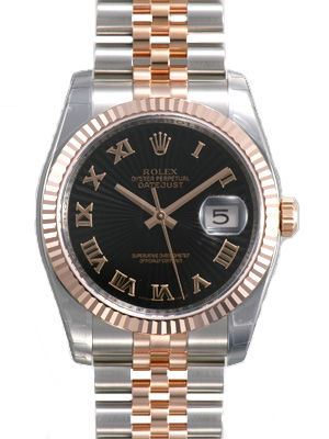 Model: 116231-BKRJ - CASE = [Material:Stainless Steel], [Case Diameter:36], [Bezel:Fluted 18kt Rose Gold], [Water Resistant:100 Meters - 330 Feet], [Crystal:Sapphire], DIAL = [Color:Black Roman Numeral], MOVEMENT = [Type:Automatic Self Winding], BAND = [Type:Two Tone Rose Gold and Stainless Steel], (Usually ships in 1 to 2 weeks.)