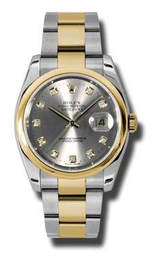 Model: 116203-GRYDO - Case,; MATERIALSTAINLESS STEEL AND 18K YELLOW GOLD = [Case Diameter36], [BezelDomed], [Water Resistant100 Meters - 330 Feet], [CrystalSapphire], Dial,; COLORGREY DIAMOND = Movement,; TYPEAUTOMATIC SELF WINDING = [CrownScrew Down], Band,; CLASPOYSTERLOCK CLASP = [TypeStainless Steel With 18kt Yellow Gold], (Usually ships in 1 to 2 weeks.)