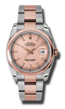 Model: 116201-CHSO - CASE = [Material:18kt Pink Gold and Stainless Steel], [Case Diameter:36], [Bezel:Domed], [Water Resistant:100 Meters - 330 Feet], [Crystal:Sapphire], DIAL = [Color:Champagne Index], MOVEMENT = [Type:Automatic Self Winding], [Crown:Screw Down], BAND = [Clasp:Oysterlock Clasp], [Type:18kt Pink Gold and Stainless Steel], (Usually ships in 1 to 2 weeks.)