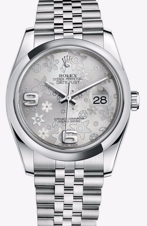 Model: 116200-SIFLAJ - CASE = [Material:Stainless Steel], [Case Diameter:36], [Bezel:Fixed domed], [Case Back:Solid], [Water Resistant:100 Meters - 330 Feet], [Crystal:Sapphire],; DIAL = [Color:Silver Floral Arabic],; MOVEMENT = [Type:Automatic Self Winding], [Crown:Screw Down],; BAND = [Type:Stainless Steel Jubilee], (Usually ships in 1 to 2 weeks.)