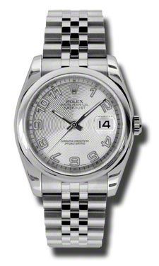 Model: 116200-SICAJ - Case,; MATERIALSTAINLESS STEEL = [Case Diameter36], [BezelDomed], [Case BackSolid], [Water Resistant100 Meters - 330 Feet], [CrystalScratch Resistant Sapphire], Dial,; COLORSILVER CONCENTRIC ARABIC = Movement,; TYPEAUTOMATIC SELF WINDING = [CrownScrew Down], Band,; CLASPCONCEALED CROWN = [TypeStainless steel Jubilee], (Usually ships in 1 to 2 weeks.)
