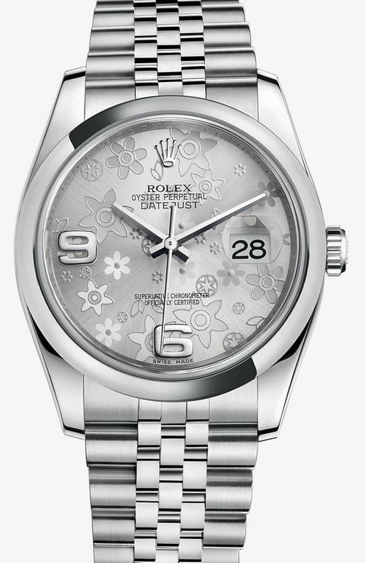 Model: 116200-SIFLAJ - CASE = [Material:Stainless Steel], [Case Diameter:36], [Bezel:Fixed domed], [Case Back:Solid], [Water Resistant:100 Meters - 330 Feet], [Crystal:Sapphire], DIAL = [Color:Silver Floral Arabic], MOVEMENT = [Type:Automatic Self Winding], [Crown:Screw Down], BAND = [Type:Stainless Steel Jubilee], (Usually ships in 1 to 2 weeks.)