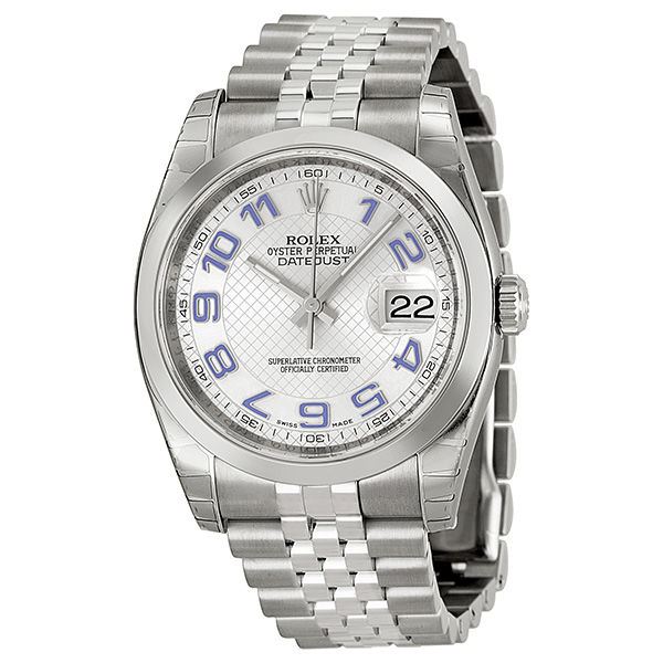 Model: 116200-SIDEAO - CASE = [Material:Stainless Steel], [Case Diameter:36], [Bezel:Fixed Stainless Steel], [Case Back:Solid], [Water Resistant:100 Meters - 330 Feet], [Crystal:Scratch Resistant Sapphire], DIAL = [Color:Silver Deco Arabic], MOVEMENT = [Type:Automatic Self Winding], [Crown:Screw Down], BAND = [Clasp:Deployant With Push Button], [Type:Stainless Steel Jubilee], (Usually ships in 1 to 2 weeks.)