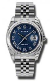 Model: 116200-BLJRJ - CASE = [Material:Stainless Steel], [Case Diameter:36], [Bezel:Fixed Domed], [Water Resistant:100 Meters - 330 Feet], [Crystal:Sapphire], DIAL = [Color:Blue Jubilee Roman Numeral], MOVEMENT = [Type:Automatic Self Winding Chronometer], BAND = [Type:Stainless steel Jubilee], (Usually ships in 1 to 2 weeks.)