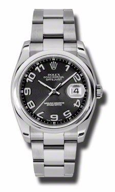 Model: 116200-BKCAO - CASE = [Material:Stainless Steel], [Case Diameter:36], [Bezel:Fixed Domed Stainless Steel], [Water Resistant:100 Meters - 330 Feet], [Crystal:Sapphire],; DIAL = [Color:Black Concentric Circle Arabic],; MOVEMENT = [Type:Automatic Self Winding], [Crown:Screw Down],; BAND = [Clasp:Oysterlock Clasp], [Type:Stainless Steel Oyster], (Usually ships in 1 to 2 weeks.)