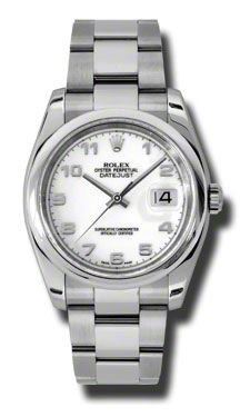 Model: 116200-WHAO - CASE = [Material:Stainless Steel], [Case Diameter:36], [Bezel:Domed], [Water Resistant:100 Meters - 330 Feet], [Crystal:Sapphire],; DIAL = [Color:White Arabic],; MOVEMENT = [Type:Automatic Self Winding], [Crown:Screw Down],; BAND = [Clasp:Oysterlock Clasp], [Type:Stainless Steel Oyster], (Usually ships in 1 to 2 weeks.)