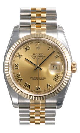 Model: 116233-CORJ - CASE = [Material:Stainless Steel], [Case Diameter:36], [Bezel:Fixed Fluted], [Water Resistant:100 Meters - 330 Feet], [Crystal:Sapphire], DIAL = [Color:Copper Roman Numeral], MOVEMENT = [Type:31 Jewels Automatic Self Winding], BAND = [Clasp:Hidden Deployant], [Type:18kt Yellow Gold and Stainless Steel Jubilee], (Usually ships in 1 to 2 weeks.)
