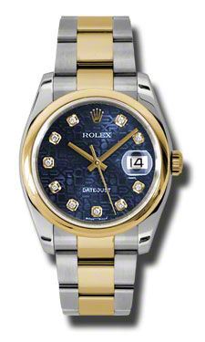 Model: 116203-BLDO - CASE = [Material:Stainless Steel and 18K Yellow Gold], [Case Diameter:36], [Bezel:Domed], [Water Resistant:100 Meters - 330 Feet], [Crystal:Sapphire], DIAL = [Color:Black Diamond], MOVEMENT = [Type:Automatic Self Winding], [Crown:Screw Down], BAND = [Clasp:Oysterlock Clasp], [Type:Stainless Steel With 18kt Yellow Gold], (Usually ships in 1 to 2 weeks.)