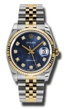 Model: 116233-BLJDJ - CASE = [Material:Stainless Steel and 18K Yellow Gold], [Case Diameter:36], [Bezel:Fluted], [Water Resistant:100 Meters - 330 Feet], [Crystal:Sapphire], DIAL = [Color:Blue Jubilee Diamond], MOVEMENT = [Type:Automatic Self Winding], [Crown:Screw Down], BAND = [Clasp:Concealed Crown], [Type:Stainless Steel With 18kt Yellow Gold], (Usually ships in 1 to 2 weeks.)