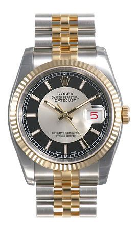 Model: 116233-SIBKSJ - CASE = [Material:Stainless Steel], [Case Diameter:36], [Bezel:Fixed Fluted], [Water Resistant:100 Meters - 330 Feet], [Crystal:Sapphire], DIAL = [Color:Silver and Black Index], MOVEMENT = [Type:31 Jewels Automatic Self Winding], BAND = [Clasp:Hidden Deployant], [Type:18kt Yellow Gold and Stainless Steel Jubilee], (Usually ships in 1 to 2 weeks.)