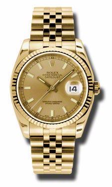 Model: 116238-CHSJ - CASE = [Material:18kt Yellow Gold], [Case Diameter:36], [Bezel:Fluted], [Water Resistant:100 Meters - 330 Feet], [Crystal:Sapphire],; DIAL = [Color:Champagne Index],; MOVEMENT = [Type:Automatic Self Winding], [Crown:Screw Down],; BAND = [Clasp:Concealed Crown], [Type:18kt Yellow Gold], (Usually ships in 1 to 2 weeks.)
