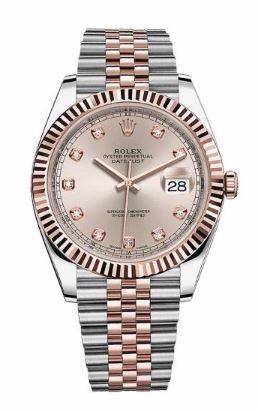 Model: M126331-0008 - CASE = [Material:Stainless Steel with 18kt Rose Gold], [Case Diameter:41], [Bezel:Fluted], [Case Back:Solid], [Water Resistant:100 Meters - 330 Feet], [Crystal:Scratch Resistant Sapphire],; DIAL = [Color:Sundust with Diamonds],; MOVEMENT = [Type:Automatic], [Crown:Screw Down],; BAND = [Clasp:Folding], [Type:Stainless Steel and 18kt Rose Gold], (Usually ships in 2 to 4 business days.)
