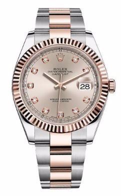 Model: M126331-0007 - CASE = [Material:Stainless Steel with 18kt Rose Gold], [Case Diameter:41], [Bezel:Fluted], [Case Back:Solid], [Water Resistant:100 Meters - 330 Feet], [Crystal:Scratch Resistant Sapphire],; DIAL = [Color:Sundust with Diamonds],; MOVEMENT = [Type:Automatic], [Crown:Screw Down],; BAND = [Clasp:Folding], [Type:Stainless Steel and 18kt Rose Gold], (Usually ships in 2 to 4 business days.)