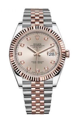 Model: M126331-0008 - CASE = [Material:Stainless Steel with 18kt Rose Gold], [Case Diameter:41], [Bezel:Fluted], [Case Back:Solid], [Water Resistant:100 Meters - 330 Feet], [Crystal:Scratch Resistant Sapphire], DIAL = [Color:Sundust with Diamonds], MOVEMENT = [Type:Automatic], [Crown:Screw Down], BAND = [Clasp:Folding], [Type:Stainless Steel and 18kt Rose Gold], (Usually ships in 2 to 4 business days.)