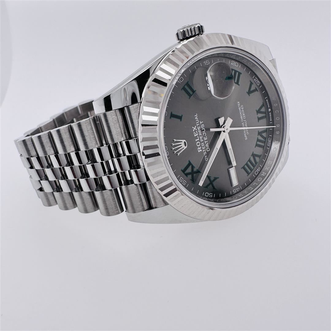 One Rolex Datejust 41mm Wimbledon Jubilee Band and Fluted Bezel. Preowned in excellent condition, this watch look like new!
