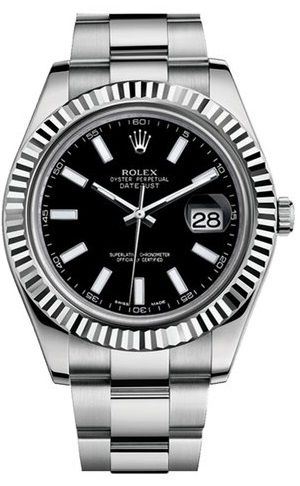 Model: 116334-0003 - CASE = [Material:Stainless Steel], [Case Diameter:41], [Bezel:Fluted 18k White Gold], [Water Resistant:100 Meters - 330 Feet], [Crystal:Sapphire], DIAL = [Color:Black Stick], MOVEMENT = [Type:Automatic Self Winding], BAND = [Clasp:Deployant Clasp], [Type:Stainless Steel Oyster], (In Stock - Ready to ship.)