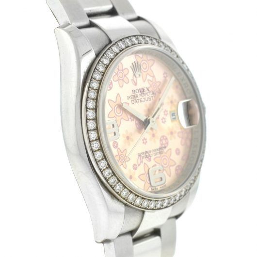 Rolex Model 116244 Datejust Pink Flower Dial Factory Diamond Bezel 36mm Watch
